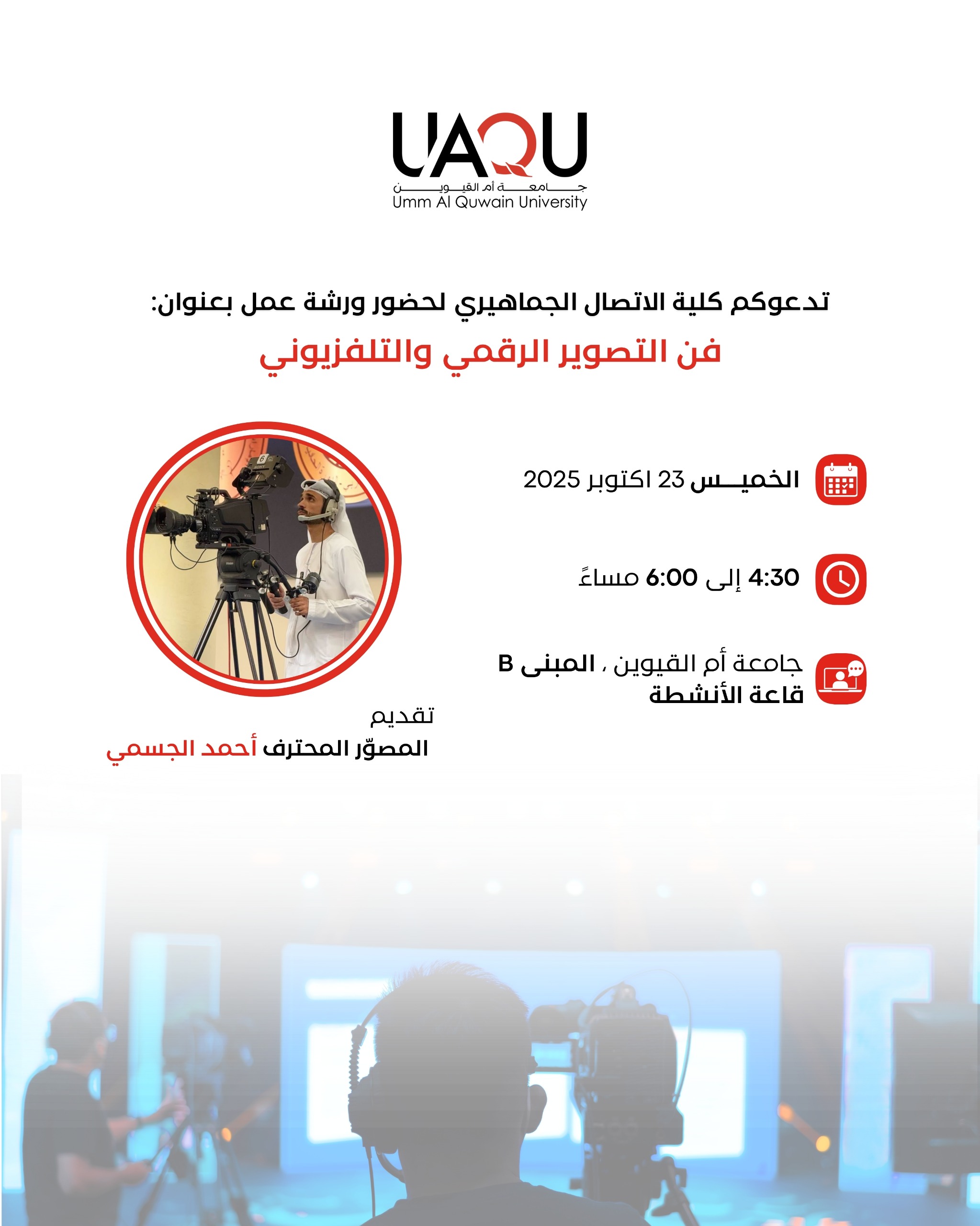 جامعة أم القيوين تنظّم ورشة "فن التصوير الرقمي والتلفزي...