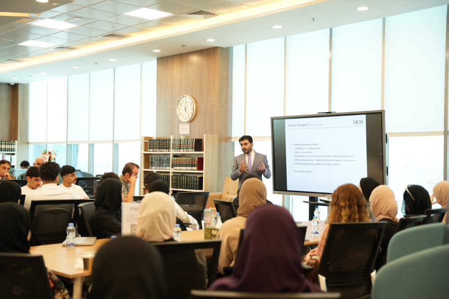 طلاب كلية إدارة الأعمال في جامعة أم القيوين يزورون غرفة...