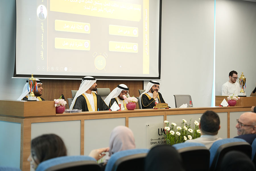 شهدت اروقة جامعة أم القيوين، مسابقة قانونية مثيرة بين طلبة كلية القانون المشاركين في مساق التدريب العملي الدا...