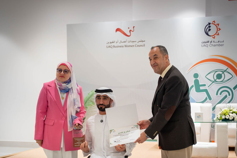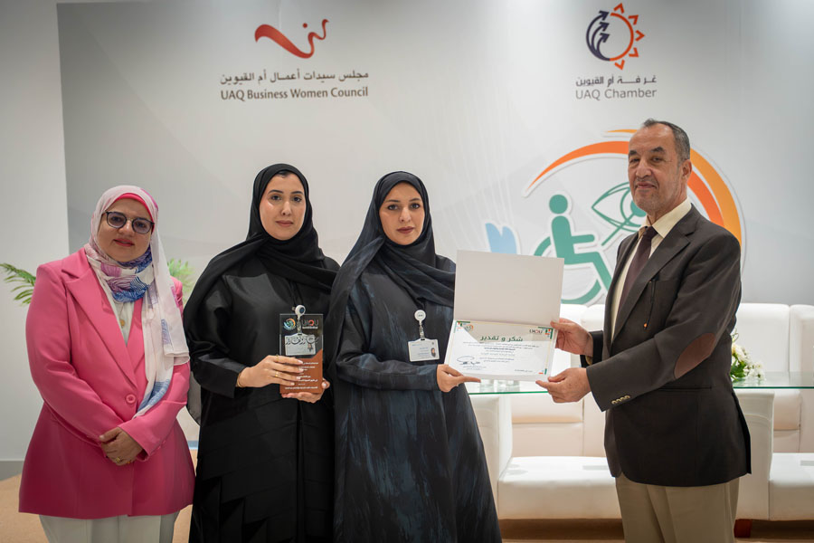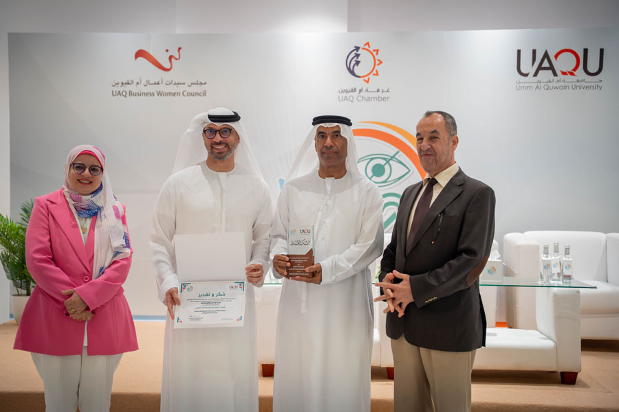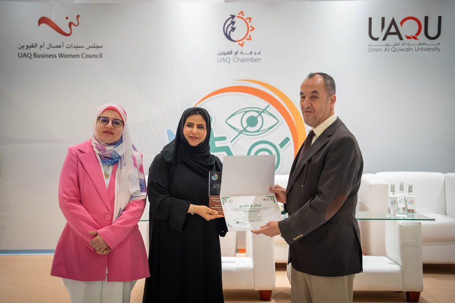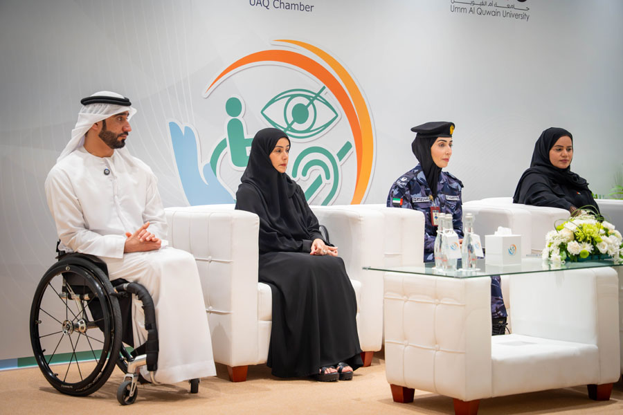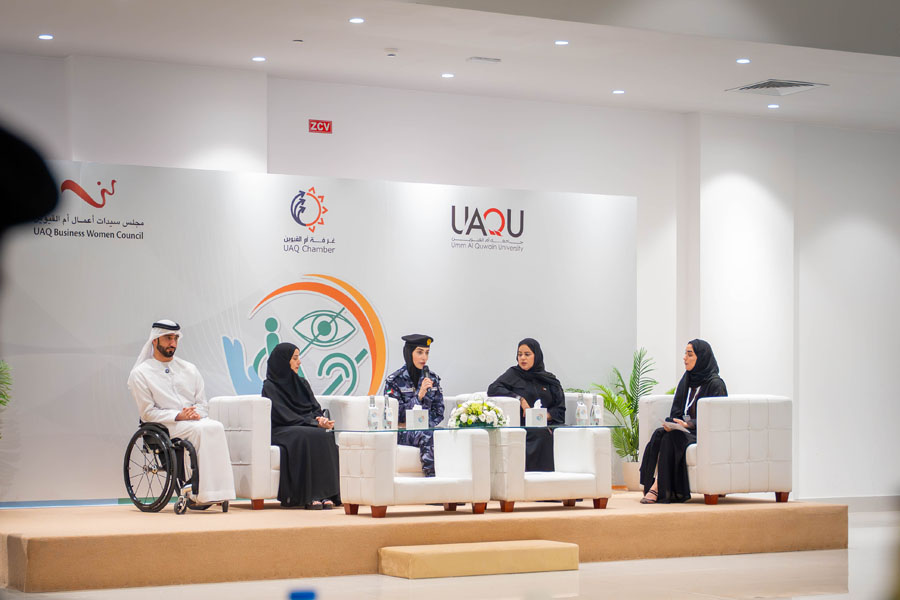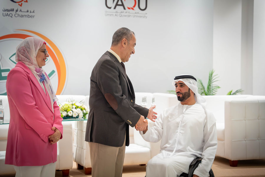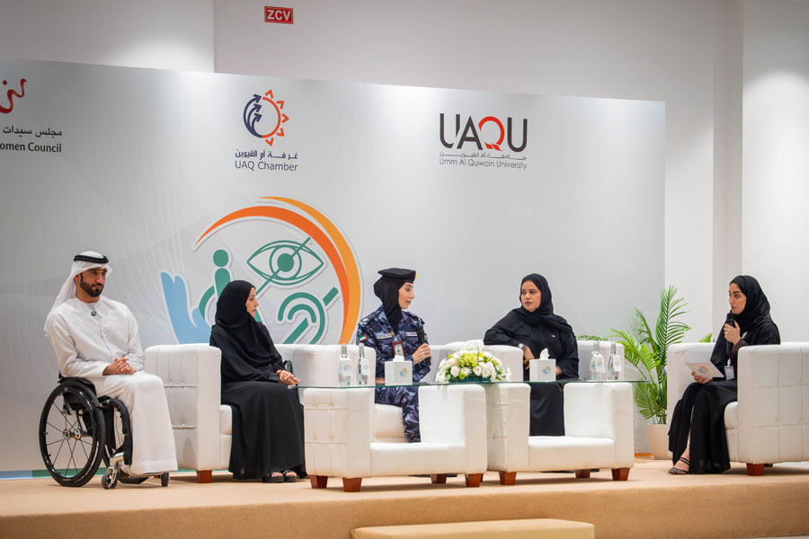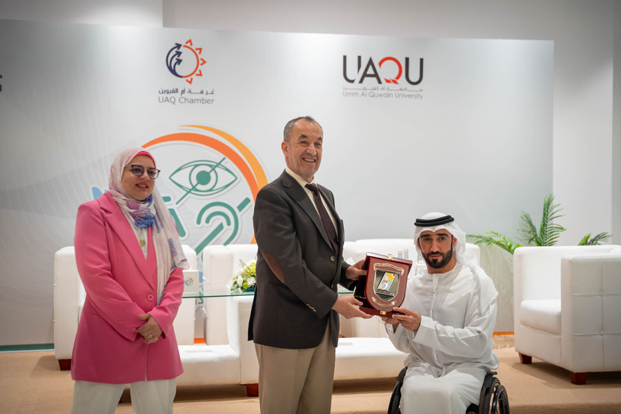 نظم طلبة مساق مشروع التخرج ببرنامج العلاقات العامة في كلية الاتصال الجماهيري بجامعة أم القيوين، اليوم، جلسةً حوارية ومعرضًا مصاحبًا في غرفة تجارة وصناعة أم القيوين بعنوان: “دور الأنشطة الاتصالية في تغيير الصورة النمطية لأصحاب الهمم”، تحت شعار “التحديات كانت البداية… والإلهام هو الغاية”، وذلك بإشراف الأستاذة الدكتورةL داليا حسن.