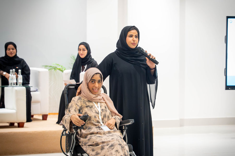 أدارت الجلسة الطالبة نورة حسن، ورافقتها الأستاذة رهف المداني بلغة الإشارة دعمًا لمبادئ التواصل الشامل وضمان مشاركة فئة الصم، فيما شارك في الجلسة نخبة من المتحدثين، وهم: سعادة منى طحنون، عضو المجلس الوطني الاتحادي، التي تناولت دور التشريعات والسياسات في تغيير الصورة النمطية لأصحاب الهمم، الرائد الدكتورة شذى ناصر أحمد المعلا من القيادة العامة لشرطة أم القيوين، التي تحدثت عن دور الشرطة المجتمعية في دمج أصحاب الهمم ودعمهم، الأستاذة أسماء خلفان، مديرة مدرسة القيم حلقة (2) بنين، التي استعرضت أهمية التعليم الدامج في بناء بيئة مدرسية أكثر شمولية، الأستاذ محمد عبدالله القايد، عضو مجلس إدارة نادي الثقة للمعاقين والقائم بأعمال المدير التنفيذي، الذي قدم تجربة الأندية المتخصصة كمنصات رائدة لتمكين أصحاب الهمم.