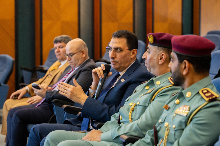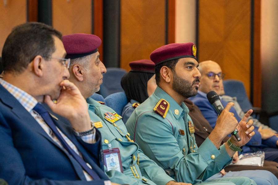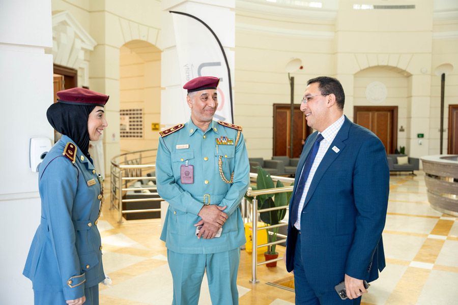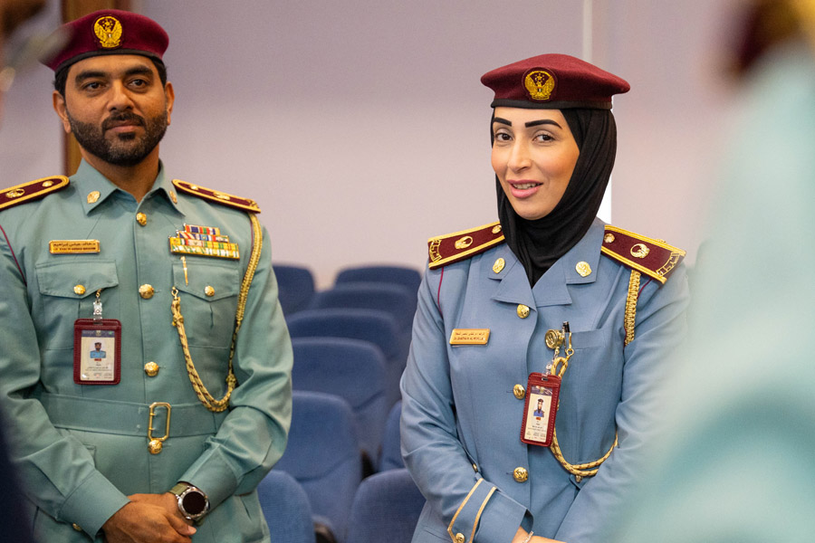 المقدم/ ناصر سلطان بن يوسف – رئيس قسم الشرطة المجتمعية، الرائد/ الشيخة الدكتورة شذى ناصر المعلا – مدير فرع البرامج المجتمعية، الرائد/ الدكتور خالد عباس إبراهيم – مدير فرع الدوريات المجتمعية.