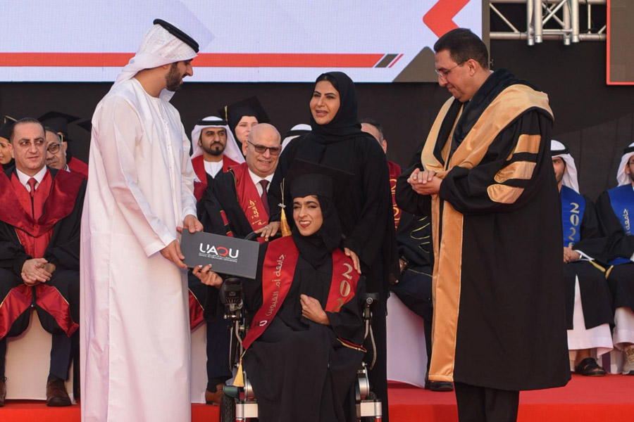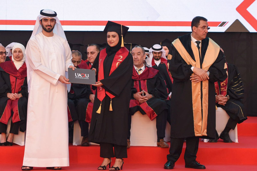 The ceremony was attended by Sheikh Ahmed bin Nasser Al Mualla, Special Advisor to His Highness the Ruler of Umm Al Quwain; Her Excellency Caroline Gunter López, Ambassador of the Republic of Paraguay to the UAE; members of the Federal National Council; directors of government entities; members of the academic and administrative staff; and parents of the graduates.