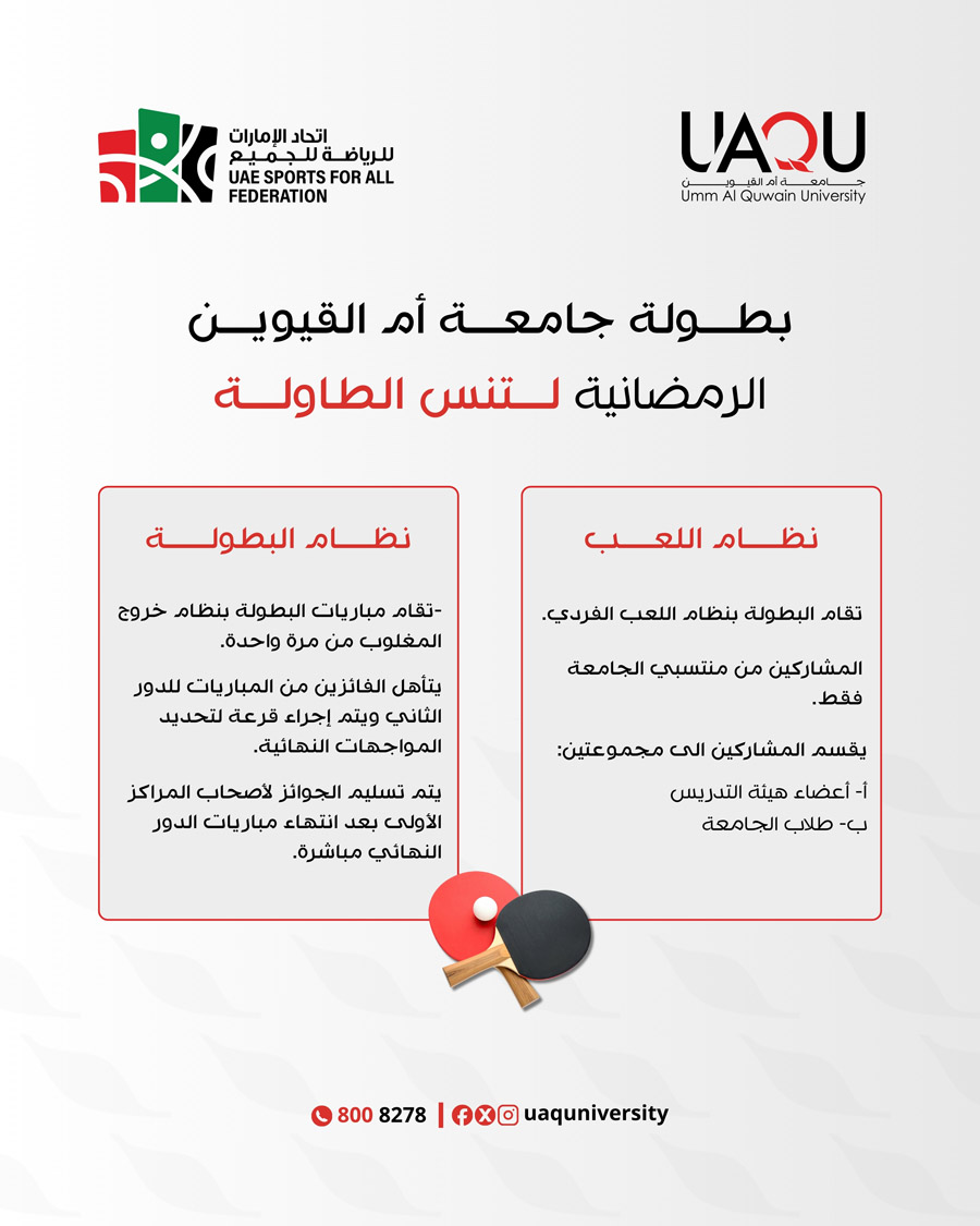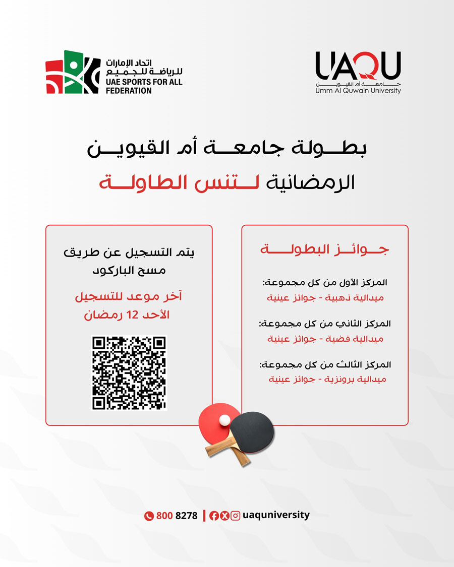 Umm Al Quwain University Ramadan Table Tennis Championship.