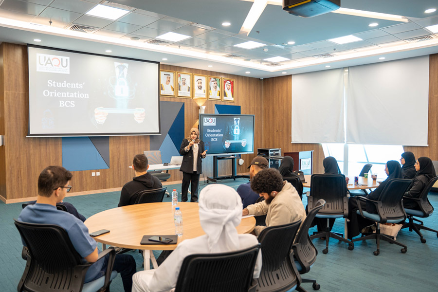 The College of Arts and Sciences organized an orientation meeting for newly admitted students in the Bachelor of Cyber Security program as part of the Spring Semester 2025–2026 activities. The meeting was attended by the Acting Dean of the College, Dr. Rabia Taleb, along with faculty members.