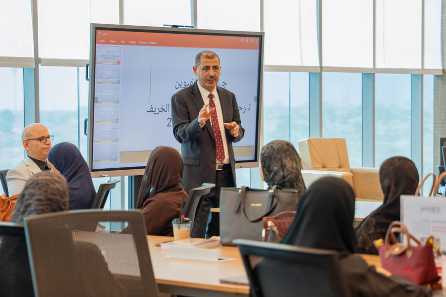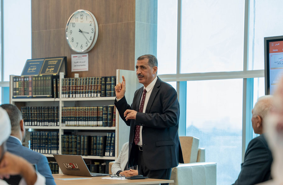 The College of Law at Umm Al Quwain University organized an orientation meeting for newly admitted students for the Spring Semester of the academic year 2025–2026. The meeting was held as part of the College’s commitment to academically preparing students and introducing them to university systems and services, in the presence of the Dean of the College, Dr. Abdelghani Qassem, along with members of the academic and administrative staff.