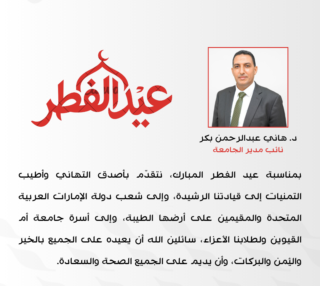 نائب مدير الجامعة يهنئ أسرة جامعة أم القيوين وطلابها بح...