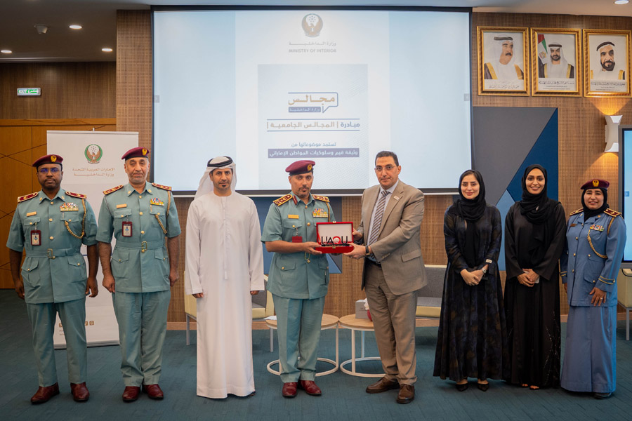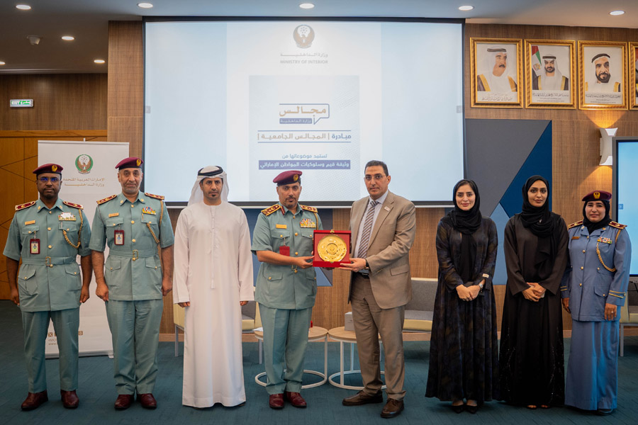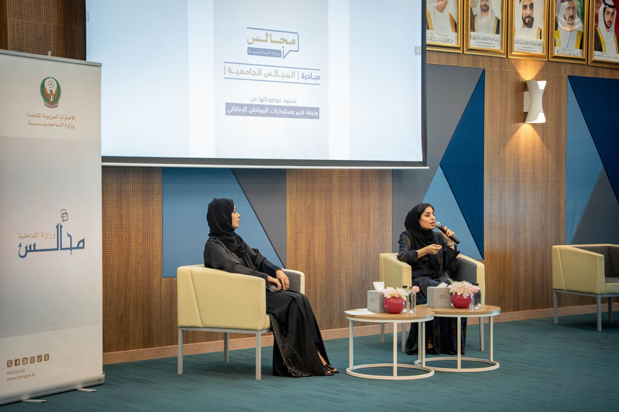 نظّم مكتب ثقافة احترام القانون بالإدارة العامة لحماية المجتمع والوقاية من الجريمة في وزارة الداخلية، وبالتعاون مع إدارة حقوق الإنسان، مجلساً ضمن مبادرة "المجالس الجامعية" في جامعة أم القيوين ، تناول موضوع "وثيقة قيم وسلوكيات المواطن الإماراتي التي تمثل مرجعاً وطنياً لترسيخ قيم الهوية الإماراتية الأصيلة وتعزيز الانتماء الوطني بين فئة الشباب وطلبة الجامعات.